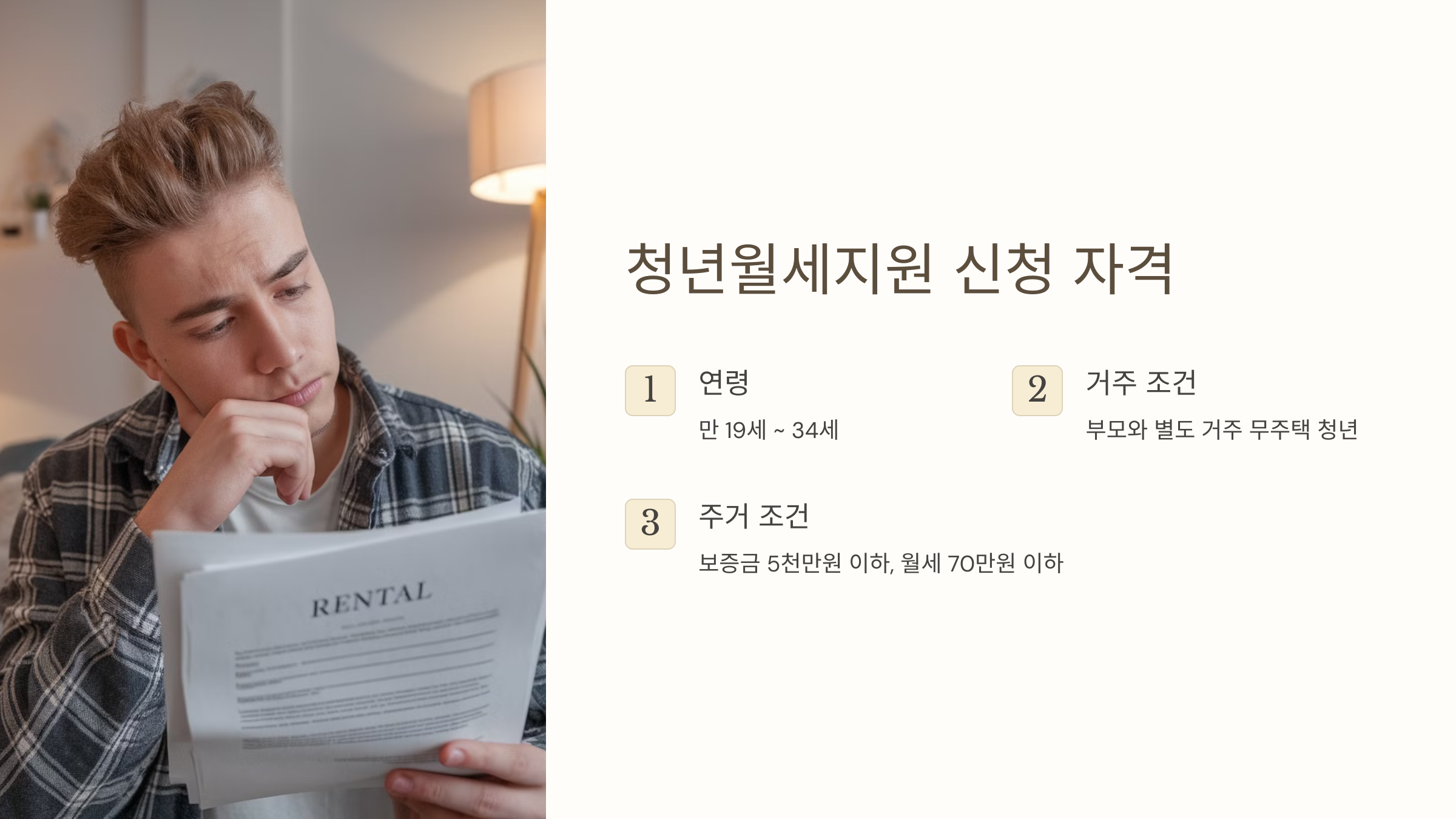 - 주거 조건: 보증금 5천만 원 이하, 월세 70만 원 이하 주택에 거주