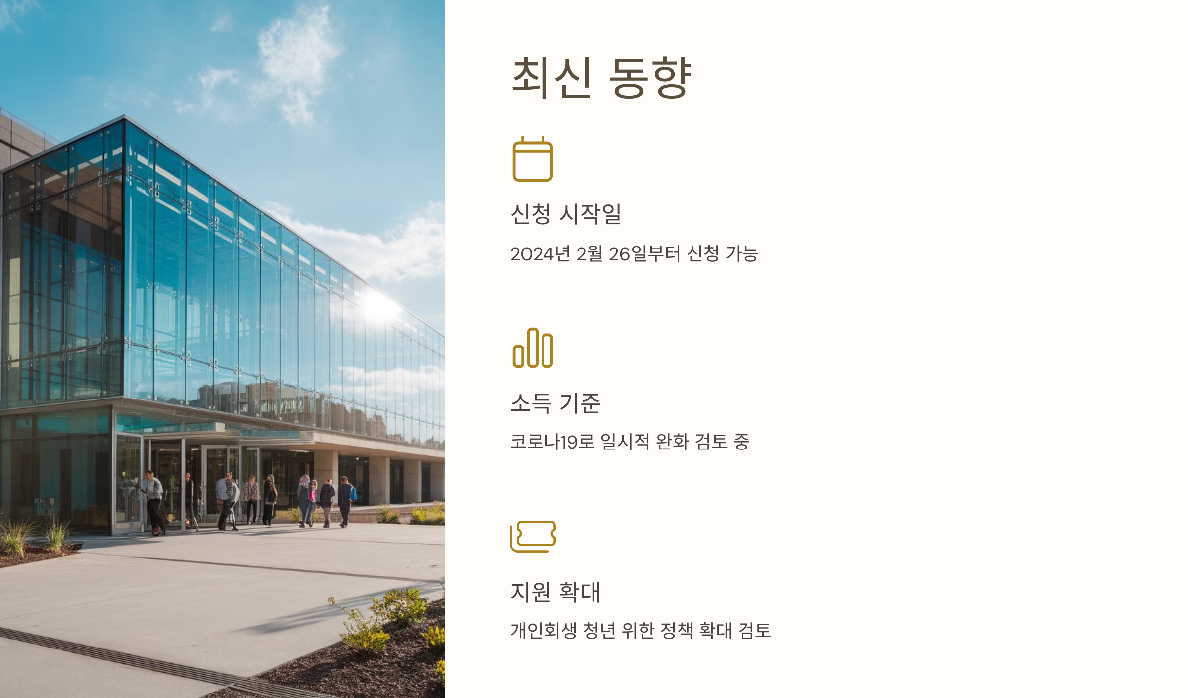 - 개인회생자 지원 확대 논의: 정부에서 개인회생 청년을 위한 지원 정책 확대를 검토 중입니다. 앞으로 더 나은 혜택이 기대됩니다.