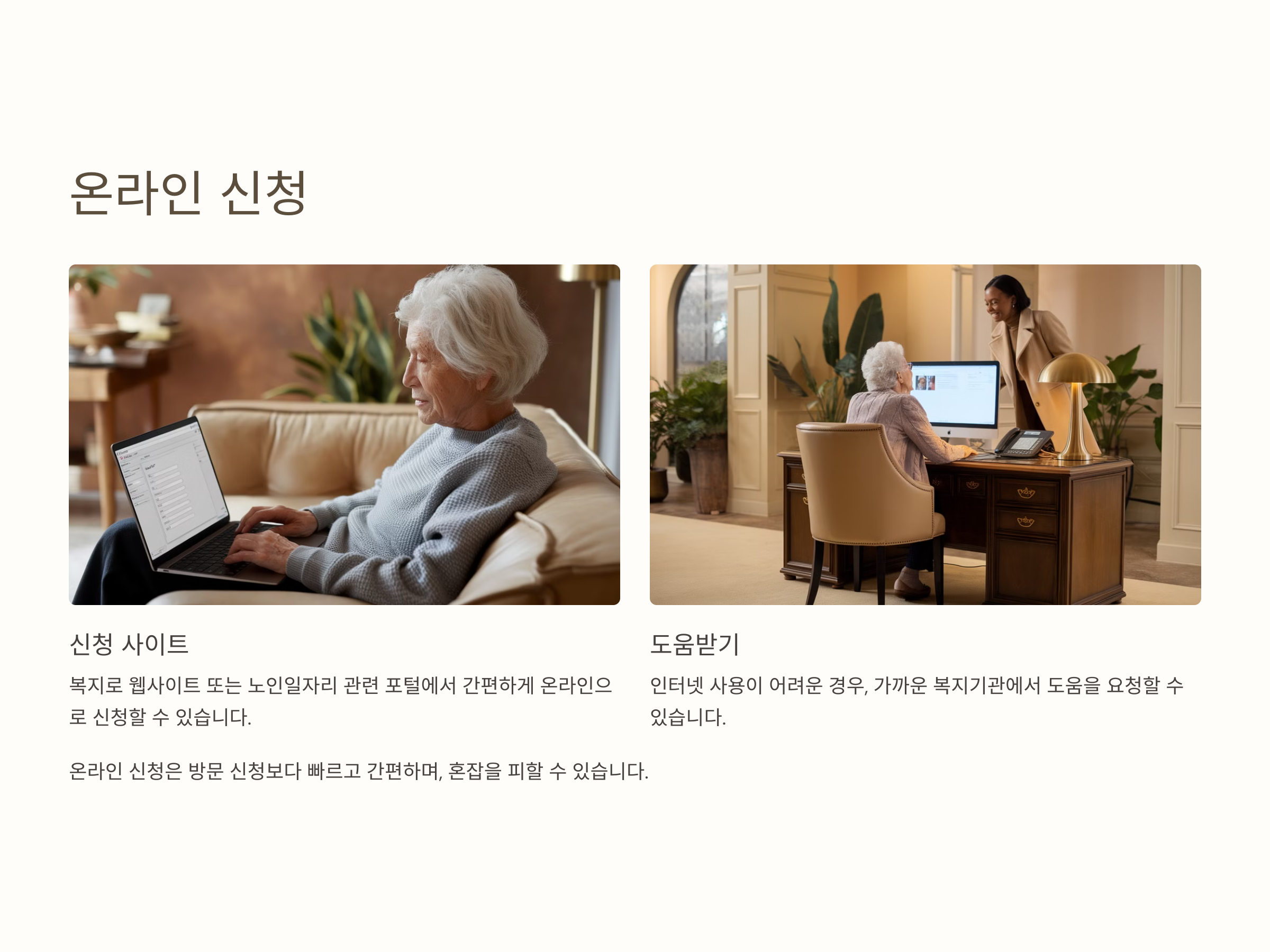 • 인터넷 사용이 어려운 경우, 가까운 복지기관에서 도움을 요청하세요.