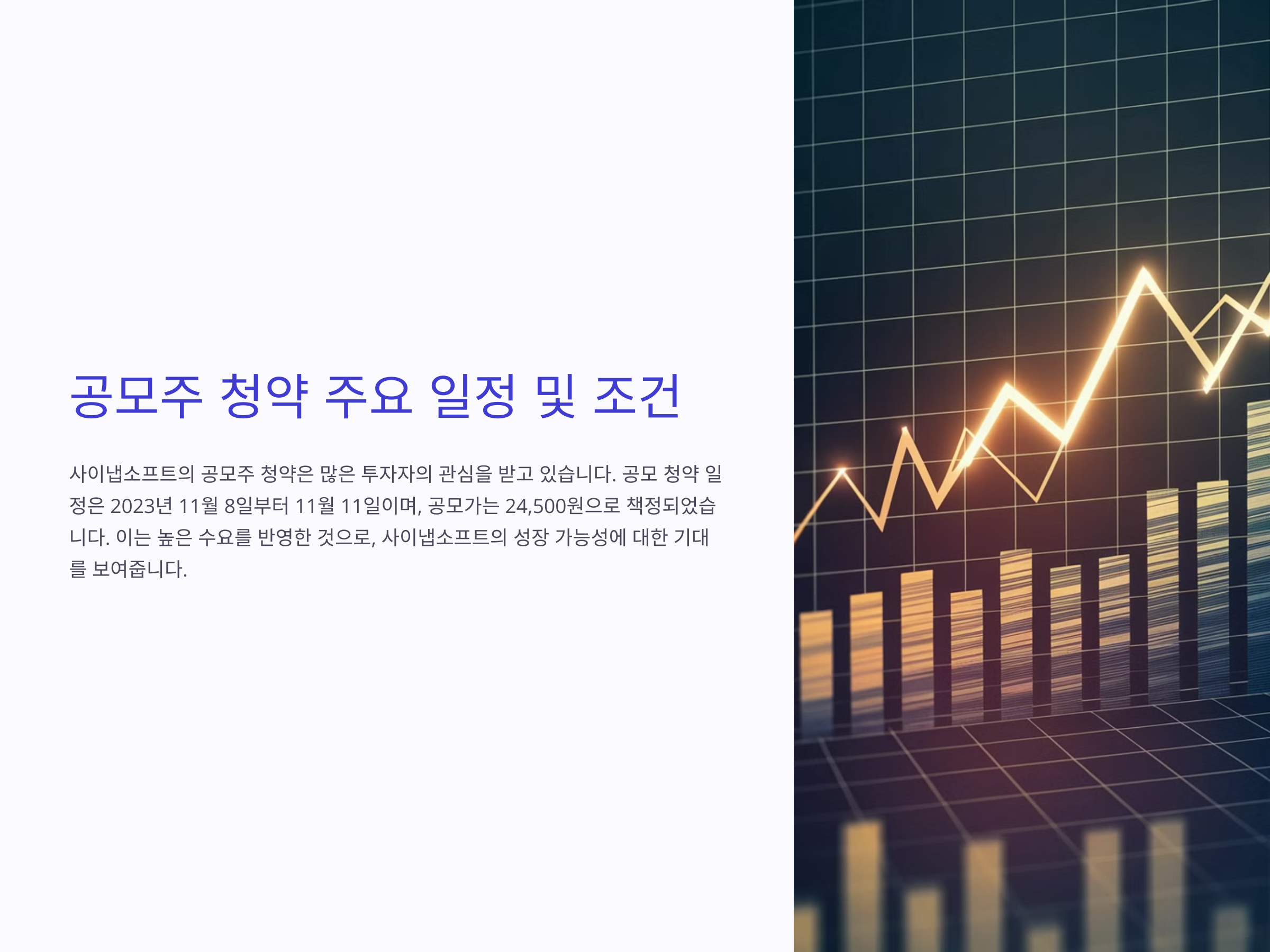 사이냅소프트의 공모주 청약은 많은 투자자가 주목하는 이슈 중 하나인데요. 청약 일정 및 주요 조건을 아래에서 확인해 볼게요.