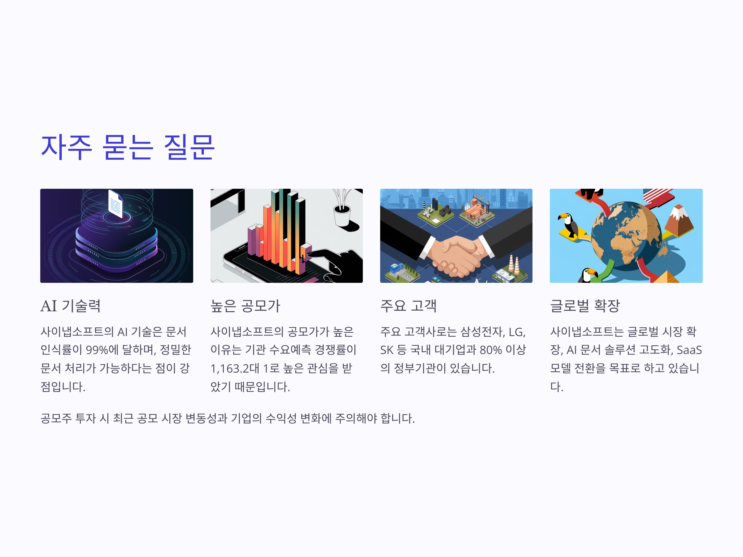 사이냅소프트는 안정적인 고객 기반과 수익성을 가진 기업이지만, 공모주 투자에는 항상 리스크가 수반됩니다. 신중한 접근이 필요해요.