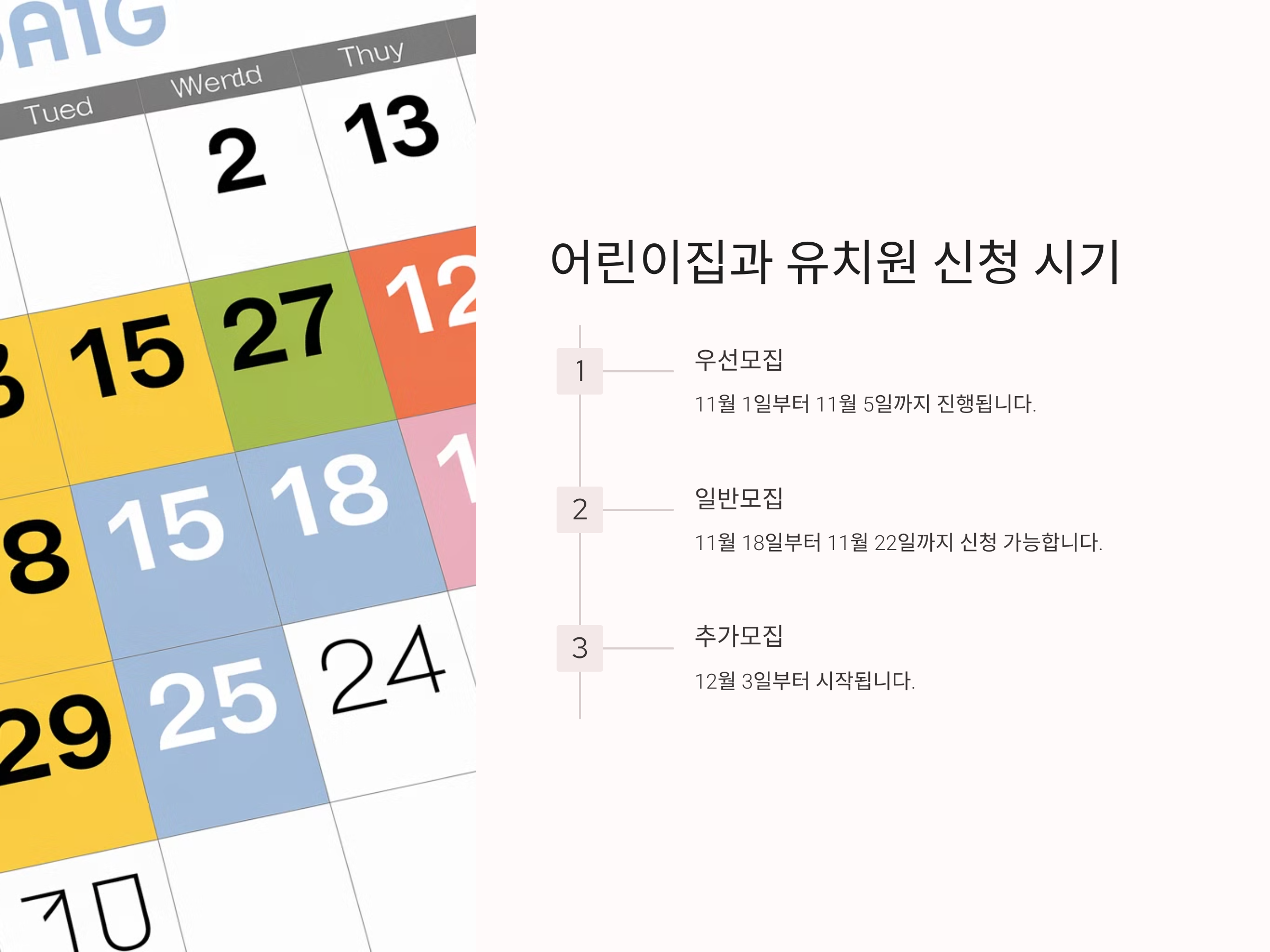 우선순위는 법정 우선순위 외에도 신청 일시, 희망 입소일 등을 종합해 결정됩니다. 학부모는 자신의 상황에 맞는 우선순위 기준을 확인하고, 필요한 서류를 미리 준비해 두는 것이 좋습니다.